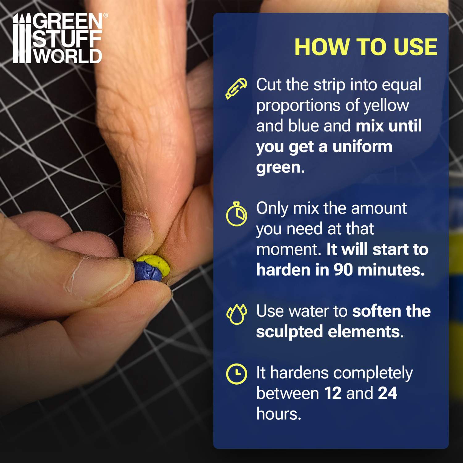 - 15 cm (6 tum) Green Stuff epoxispackel (Blue/Yellow)